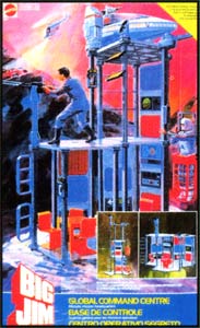 Das Command Mobile war das ultimative Spielzeug: es war einerseits ein Fahrzeug, andererseits ein Mission Control Center. Wenn das Dach und ein Seitenteil aufgeklappt wurden, und dann das gesamte Fahrzeug aufs Heck gestellt wurde, erhielt man ein ausgeklügeltes, zweistöckiges Spielset das Control Center. Das Global Command Center war ebenfalls multifunktionell. Dieses Spielset bestand im Wesentlichen aus einer Trägerkonstruktion (sah aus wie Stahlträger) und verschiedenen Plattformen, die man beliebig zusammenstellen konnte. Als Wände dienten vier unterschiedlich bedruckte Folien, auf der einen war z.B. ein Computermonitor abgebildet. | ![]() |