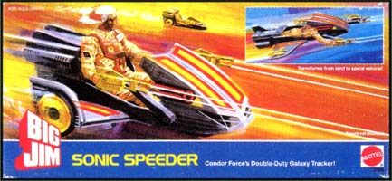Im Jahre 1986 waren schließlich die letzten Produkte der Space Serie erhältlich. Der Sonic Speeder war Vektors dreirädiger Düsenroller, der sich in ein fliegendes Kampfflugzeug verwandeln konnte. Der lilafarbende Sand Sniper gehörte Kobra, während Kirk den grauen Desert Hawk benutzte. Beide Fahrzeuge hatten einziehbare Tragflächen, die erlaubten, dass die Fahrzeuge auch als Flugzeuge einsetzbar waren. | ||||||||||