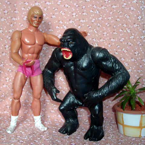 So, jetzt wollte der Affe aber auch mal was sehen. Die hübsche rosa Unterhose, die er Big Jeff geschenkt hat, macht ihn ganz buschig...