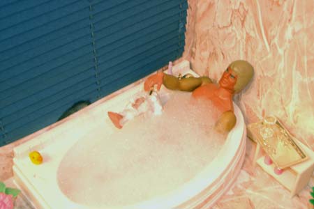 "Hach, die Haare sprießen immer so schnell, das piekst so.... Quietsche-Entchen, du brauchst deine Beinchen ja nicht zu rasieren, aber meine sind mal wieder dran!" |