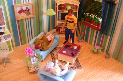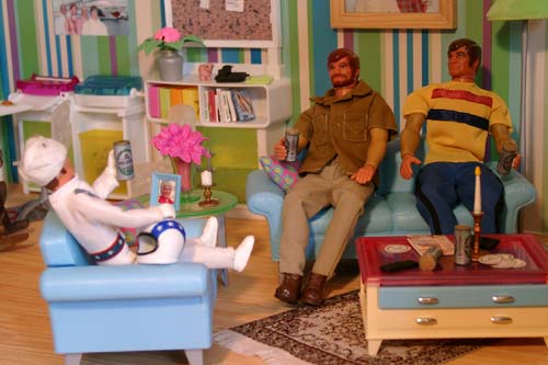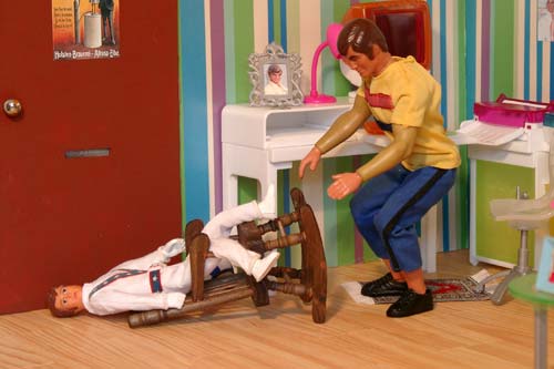 Evel bekommt einen super Turban von Jim, Jeff würde durchdrehen, wenn hier alles mit Blutflecken bespritzt wäre! Evel ist zum Glück nichts ernsthaftes passiert, auf die paar Gehirnzellen, die das wieder gekostet hat, kommt es bei ihm auch nicht mehr an... |