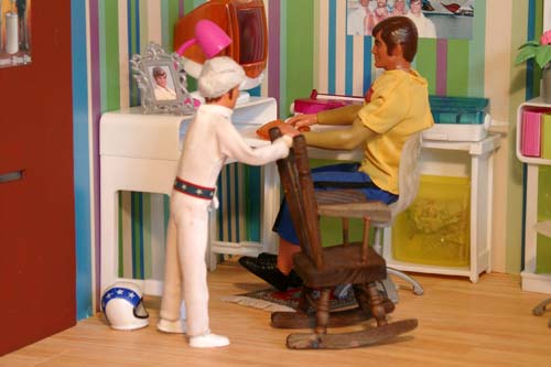 "Warum macht Ihr solch einen Lärm dahinten, ich kann ja gar nicht in Ruhe meine Hermwerkerzeitschrift lesen..." |