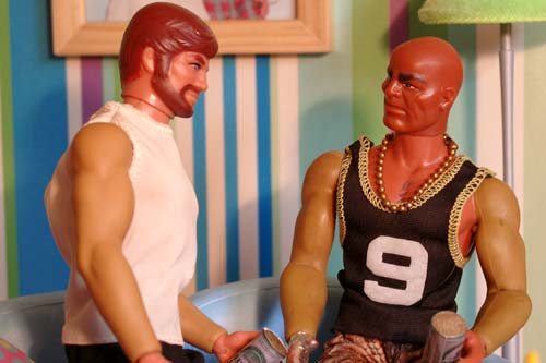 Ein entspannter Frühlingsnachmittag bei unseren Stars aus der Männer-WG. Während Josh und der Doktor ihrer Lieblingsbeschäftigung frönen und Jim den Rechner hochfahren will, ist Jeff in eine Zeitschrift vertieft. |