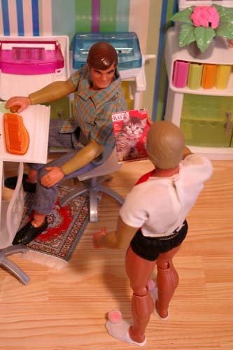 Jeff lässt die Zeitschrift auf seinen Schoß sinken. "Ich würd so gern ein Miezekätzchen haben, darf ich?"