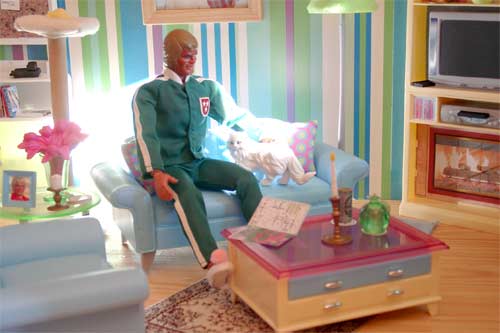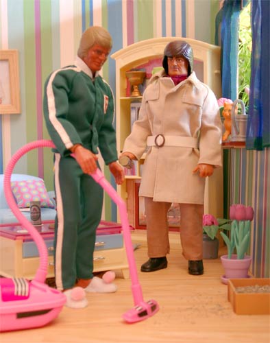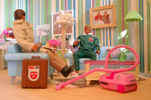 "Der ist aber leise." "Ich bin froh, dass Sie das sagen, denn das ist einer der vielen Vorteile des Super-Sauber-Saugers aus dem Hause 004." "Erzählen Sie mehr, wollen Sie ein Bier? Setzen Sie sich doch!" |