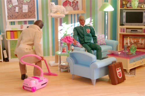 Die Hausarbeit ist erledigt, Jeff gönnt sich ein kühles Blondes und macht es sich mit seiner Kuschelmuschi Jeannie auf dem Sofa bequem. |