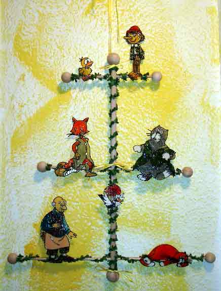 ein Friesenbaum mit Gina, Pinocchio, dem Fuchs und dem Kater und mit Rocco, Gepetto und Giulietta |